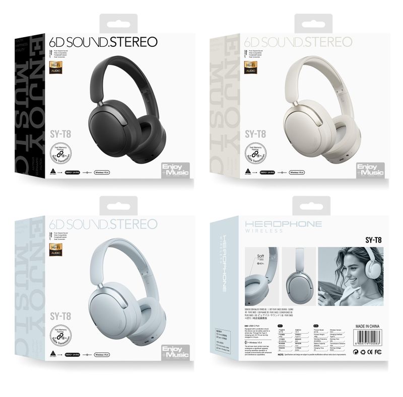 2025 New Arrivals T8 HIFI Wireless BT 5.4 Headphones Bass Stereo Sports Music Headset with Mic ODM Casque Auriculaire Kopfhorer