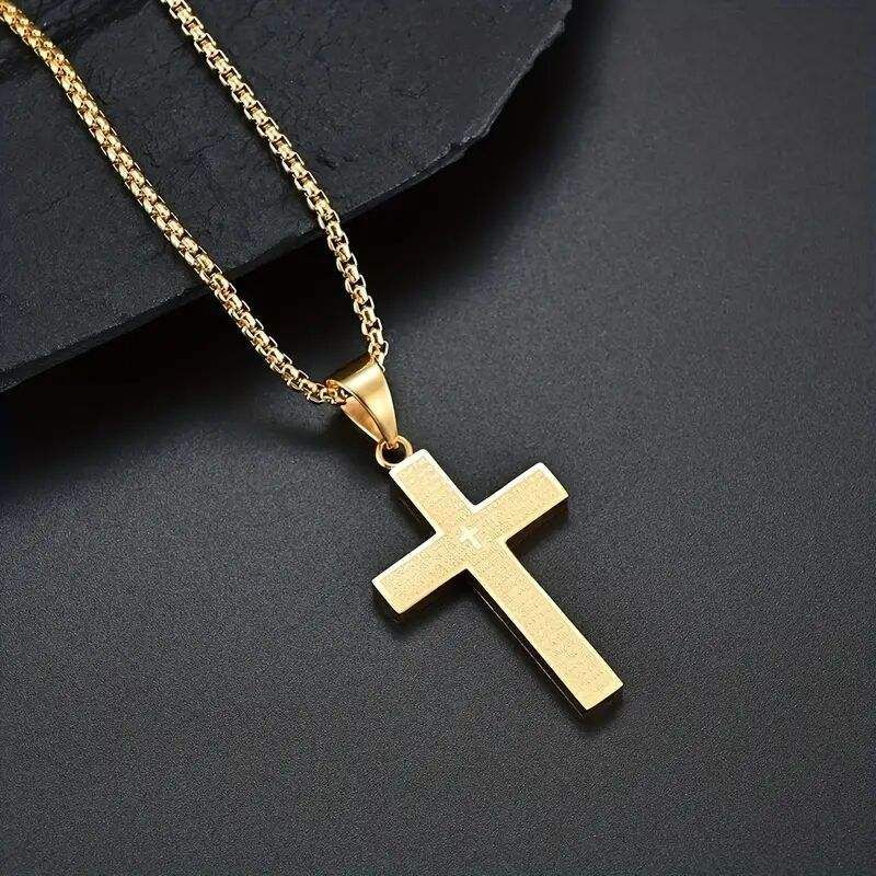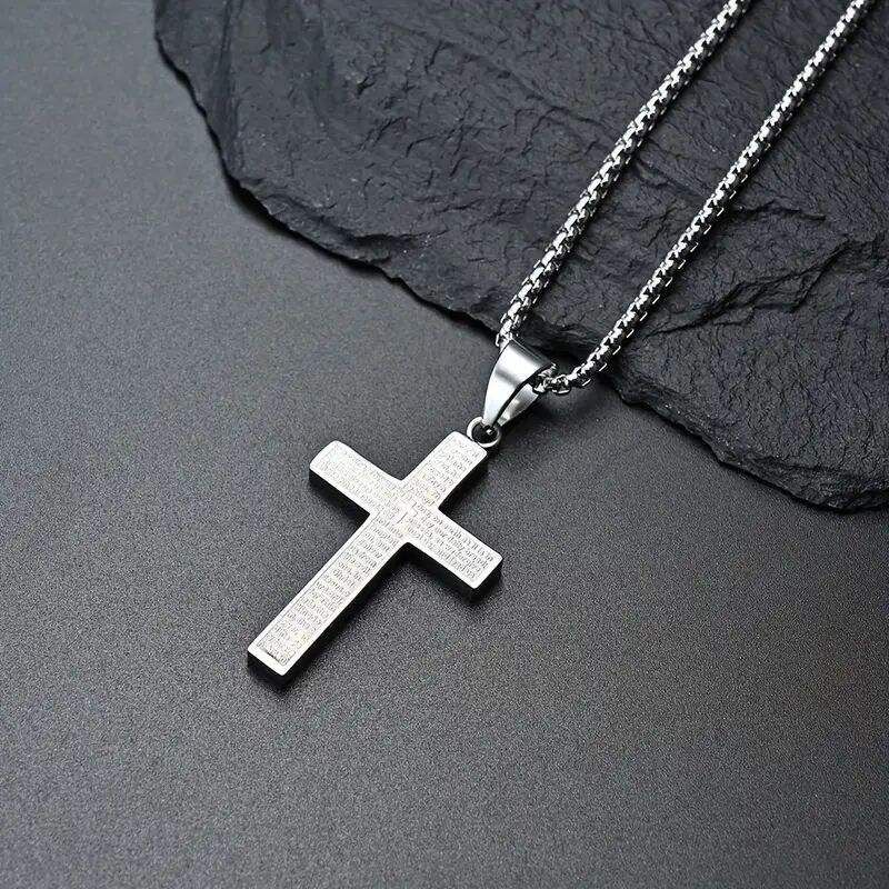 Fine Jewelry Necklaces 1pc Multi-color Stainless Steel Carved Cross Pendant Necklace Titanium Steel High Polished Hip-Hop Style